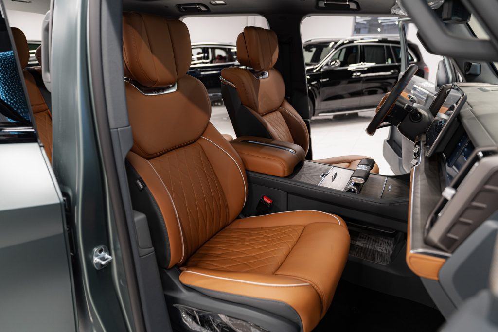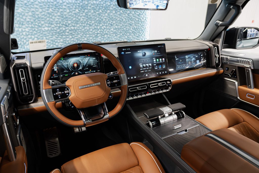 Смелый экстерьер в армейском стиле сочетается с премиальным интерьером: кожаная отделка сидений, большой двухэкранный информационно-развлекательный комплекс, дисплей телеметрии для бездорожья и интеллектуальные возможности подключения (Apple CarPlay/Android Auto). Безопасность повышена благодаря усиленной раме, нескольким подушкам безопасности и системам помощи водителю, таким как система помощи при спуске и система мониторинга слепых зон.