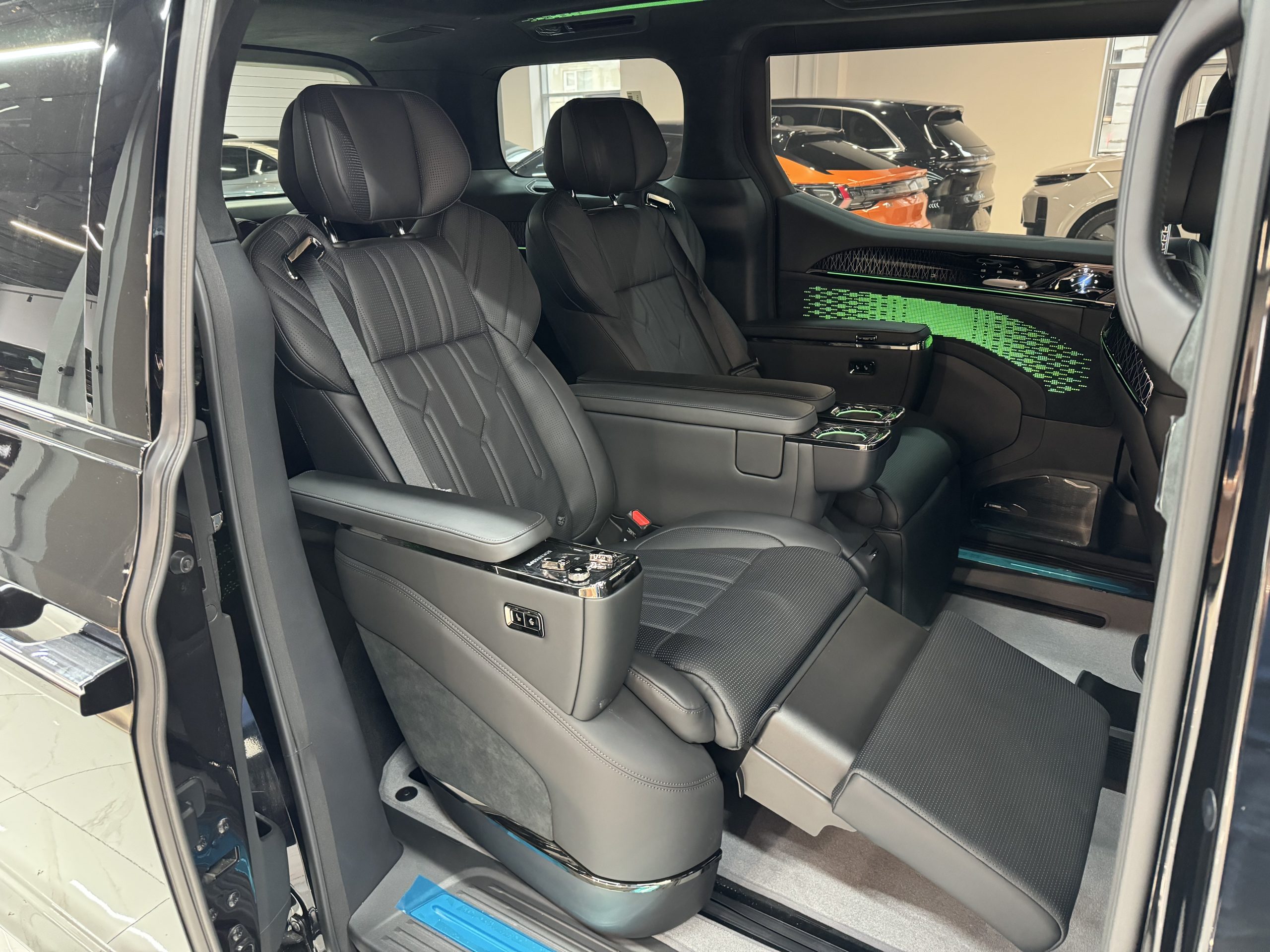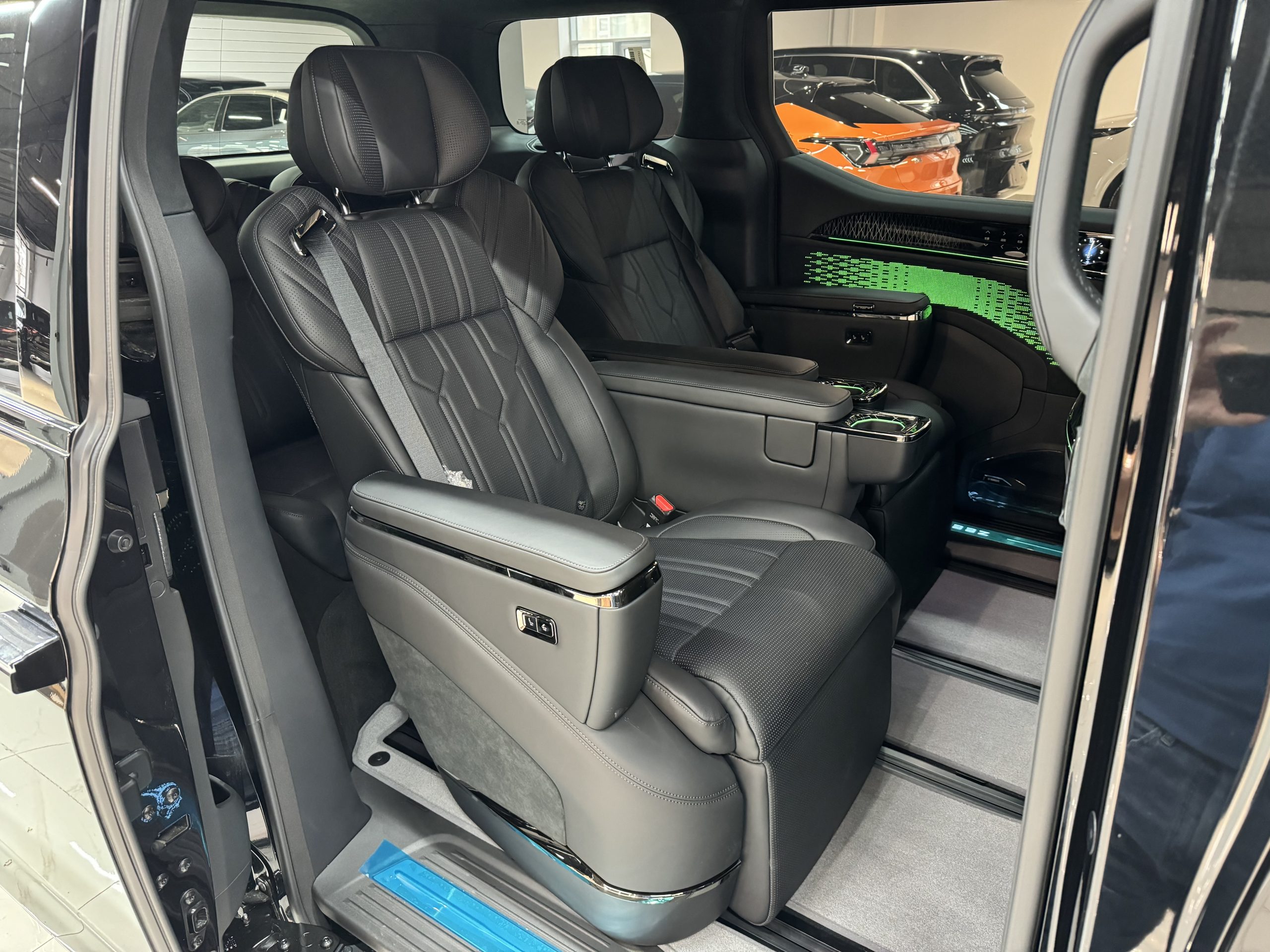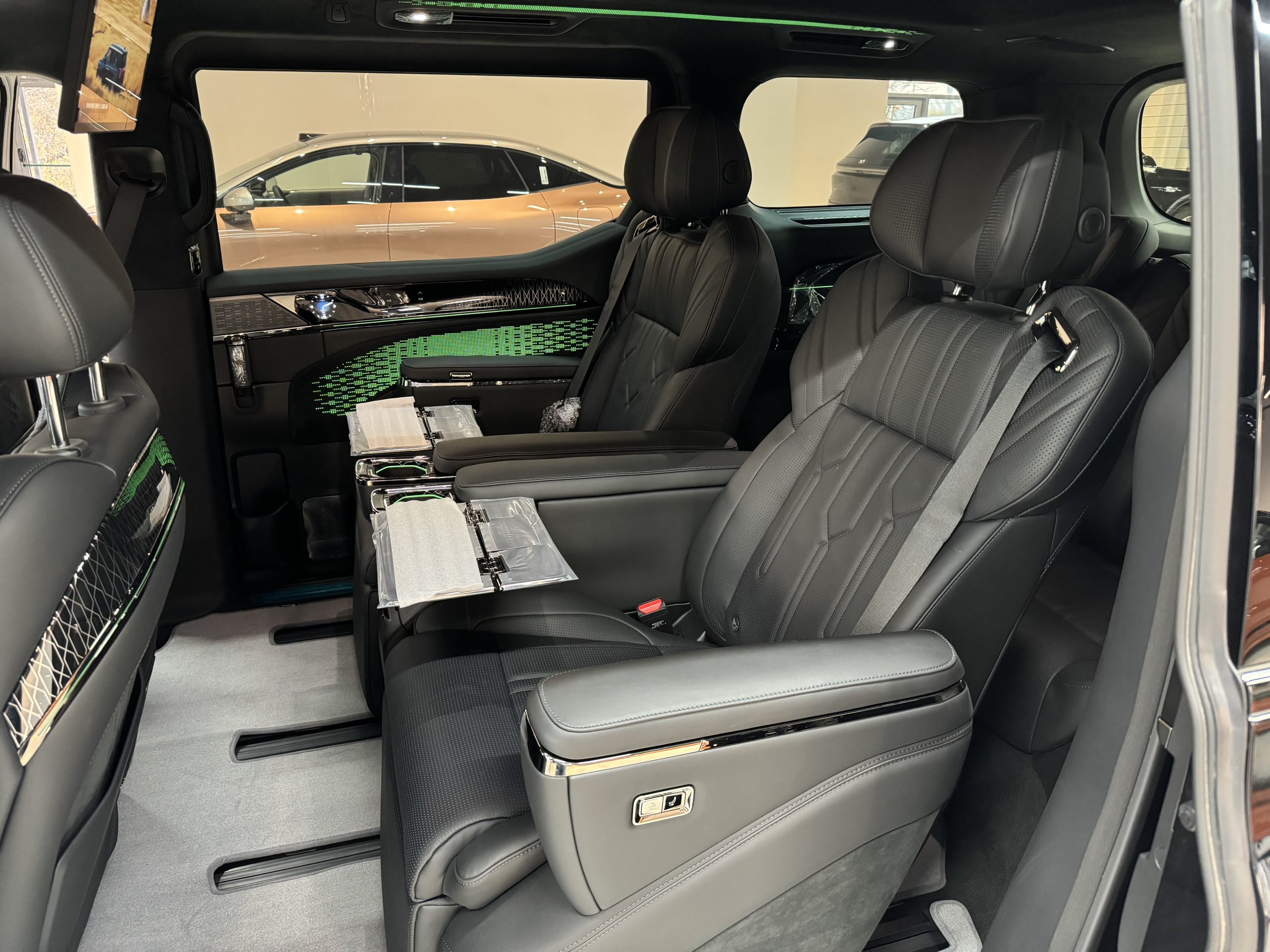 Выберите 6-местную компоновку салона «First-Class» с кожаными сиденьями Sofaro Nappa (подогрев, вентиляция, массаж) или 7-местную универсальную конфигурацию 2+2+3. Пассажиры на задних сиденьях оценят скрытый столик-откидной столик, панорамный люк и аудиосистему премиум-класса, а пассажиры на передних сиденьях — интуитивно понятный сенсорный экран и дополненную реальность (AR-HUD) для удобного подключения.
